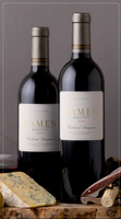 Two bottles of our 2021 Kashmir Cabernet Sauvignon, a French wine key and a lead-free crystal decanter.